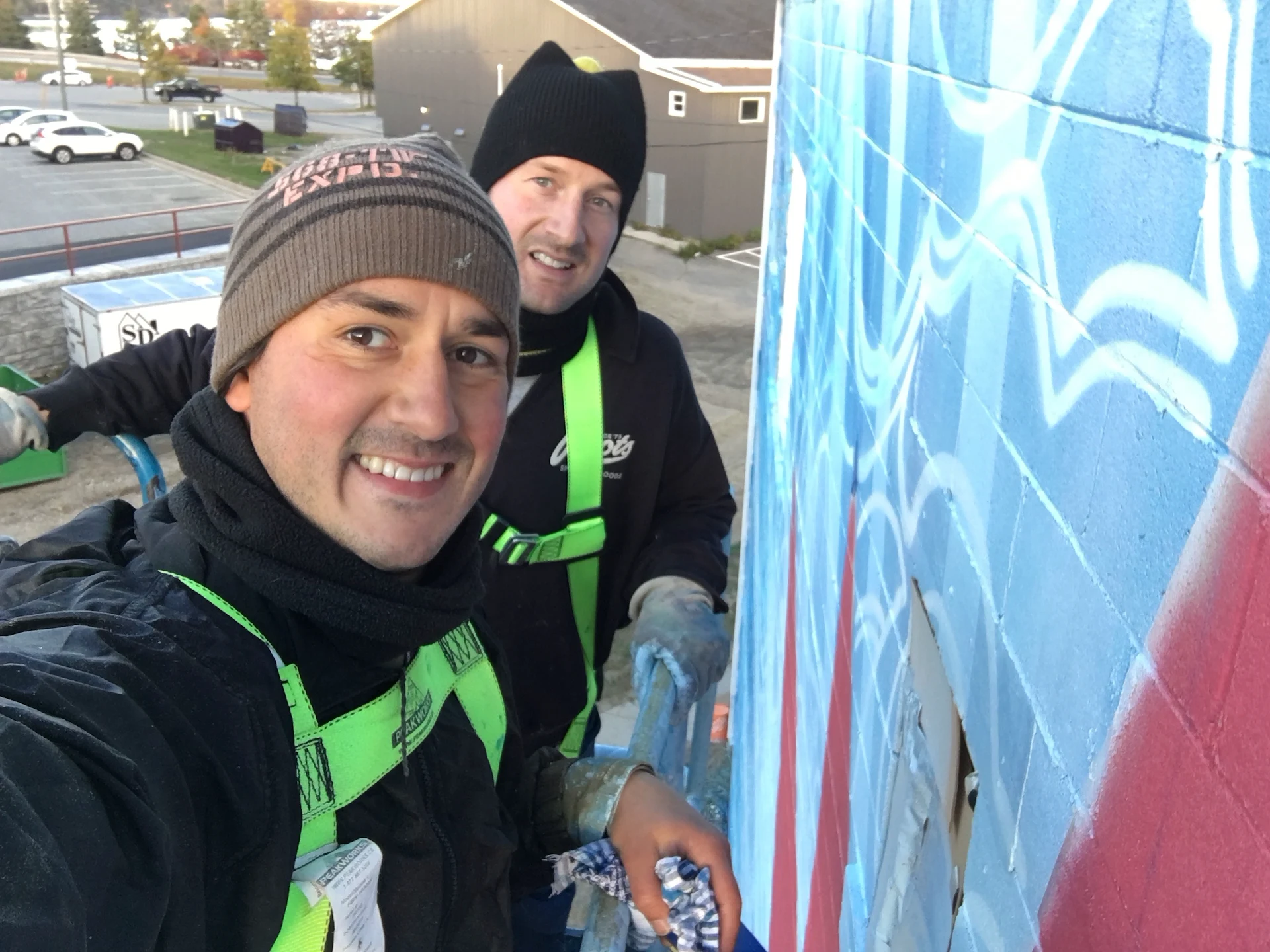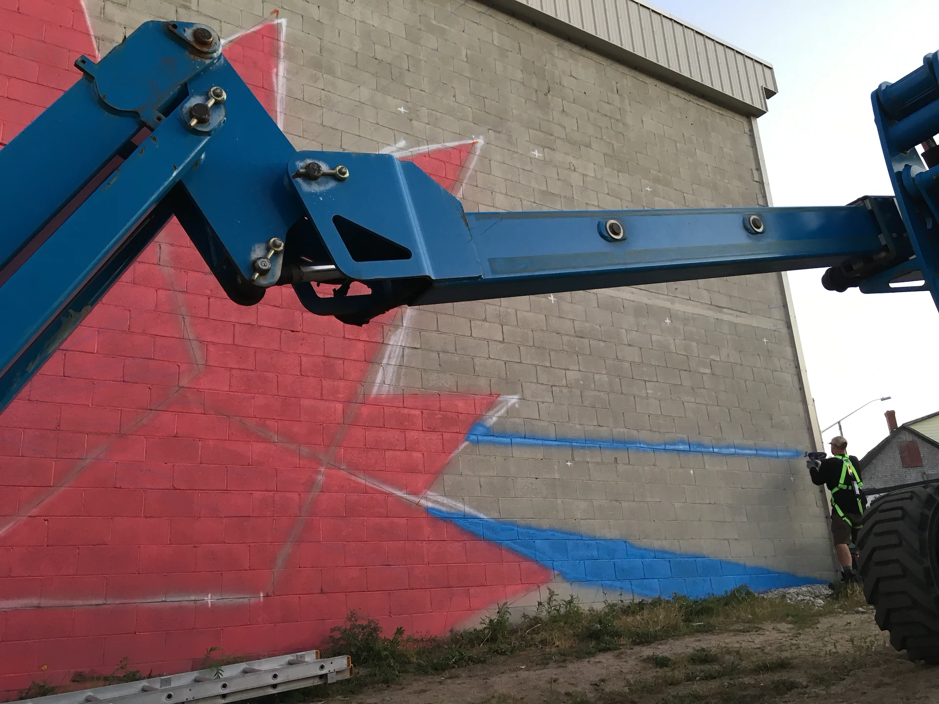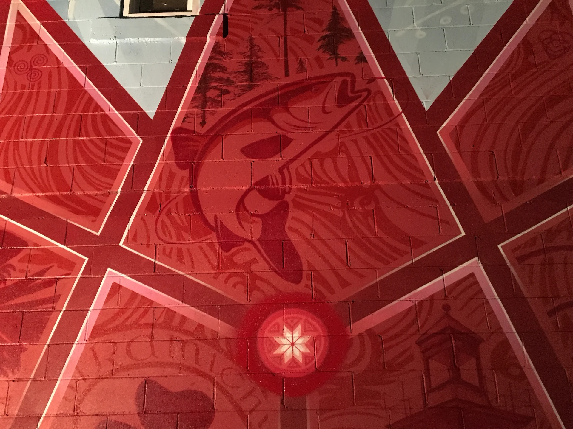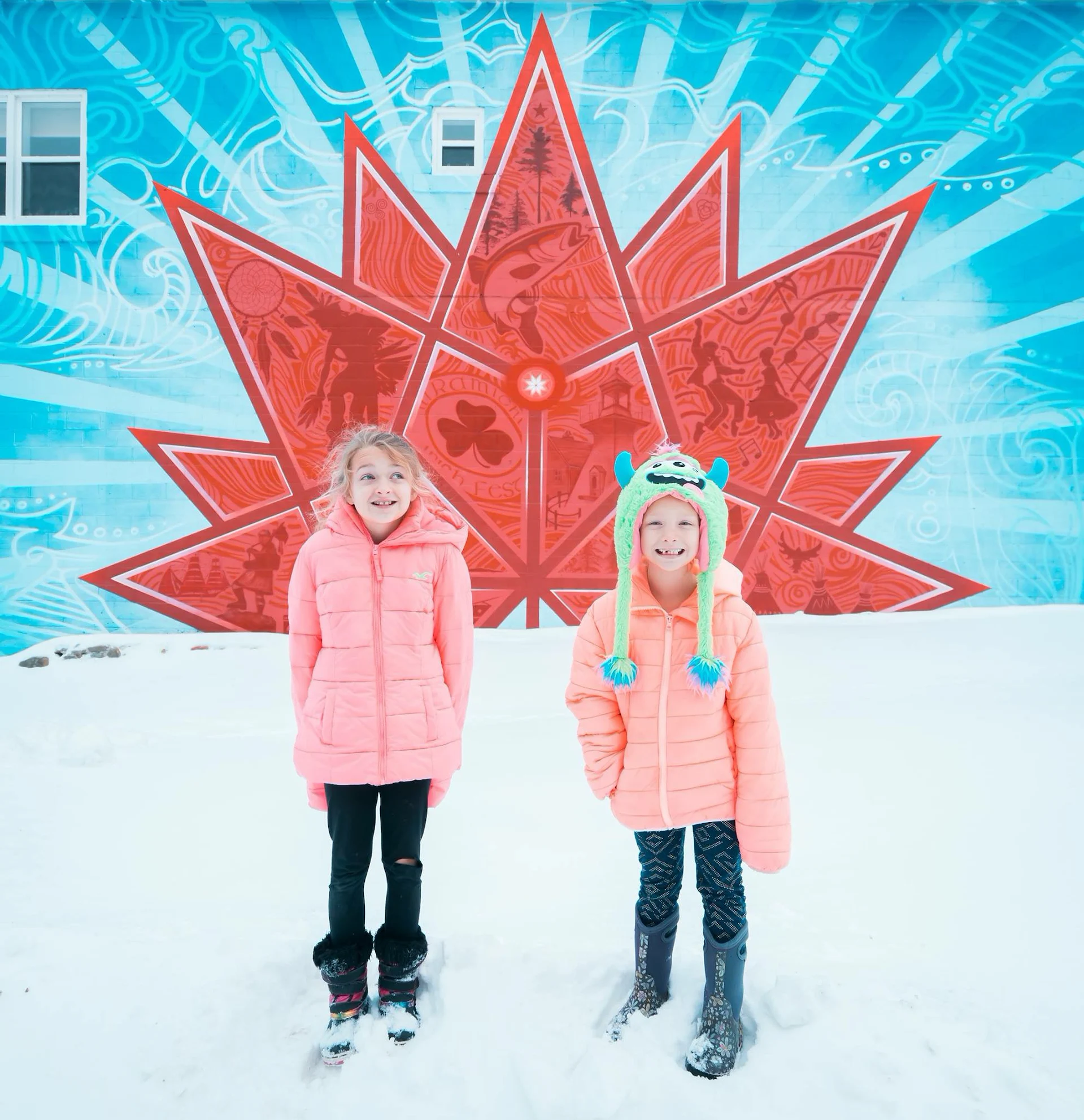 Downtown Miramichi New Brunswick Mural designed by Loogaroo & painted by Christian Toth as part of ‘Canada 150’, Canada’s 150 year founding celebration. A mix of federal, provincial, and municipal funding allowed the creative project to come to fruition. Dimensions; 66ft. (W) x 32ft. (H)