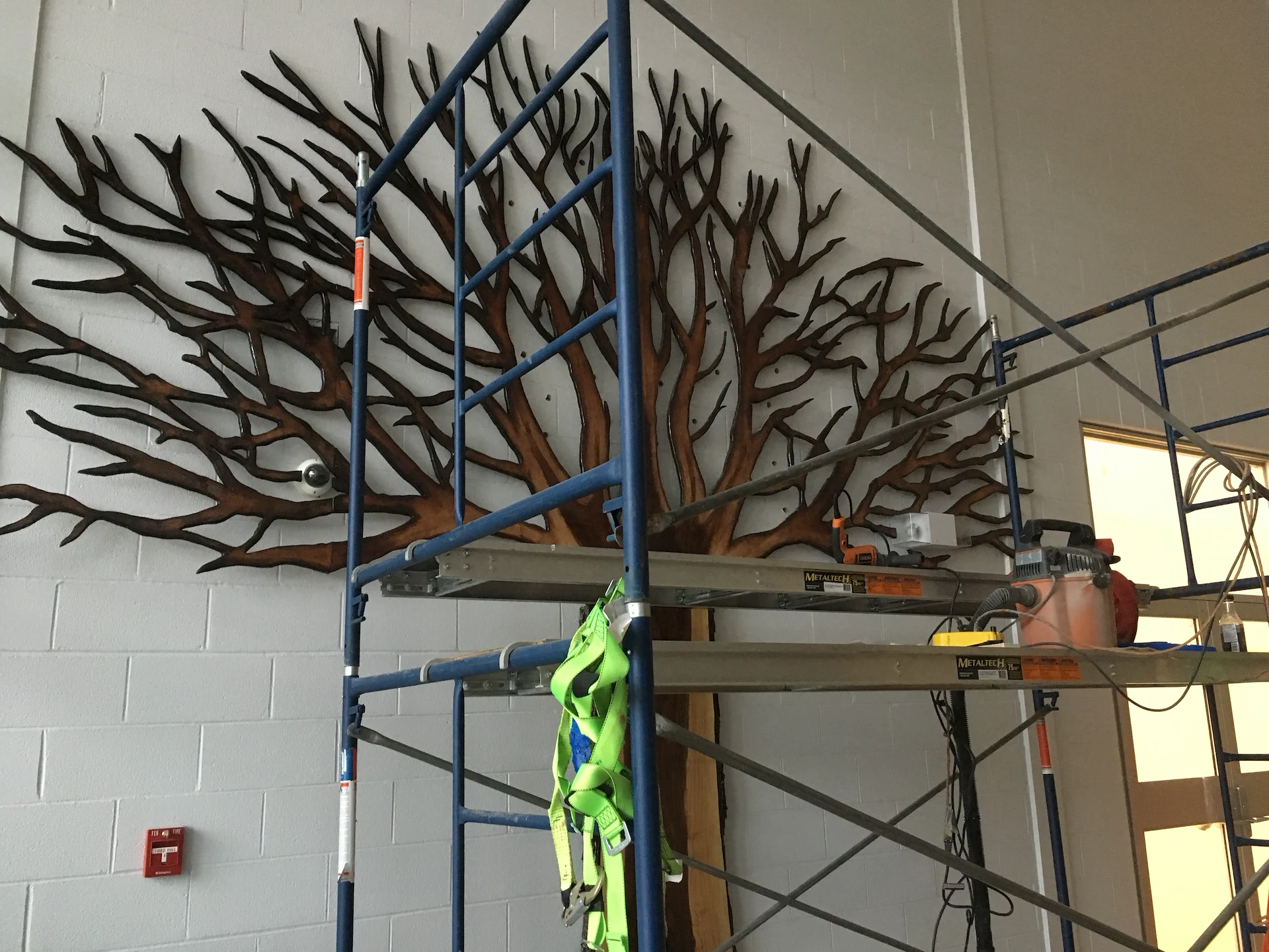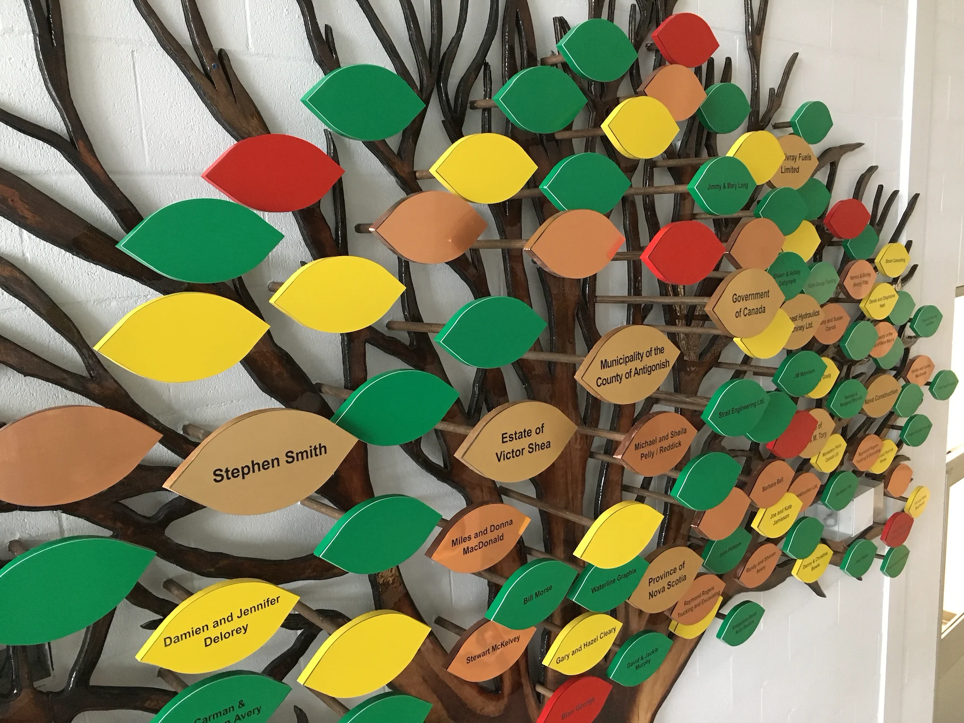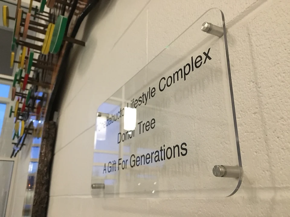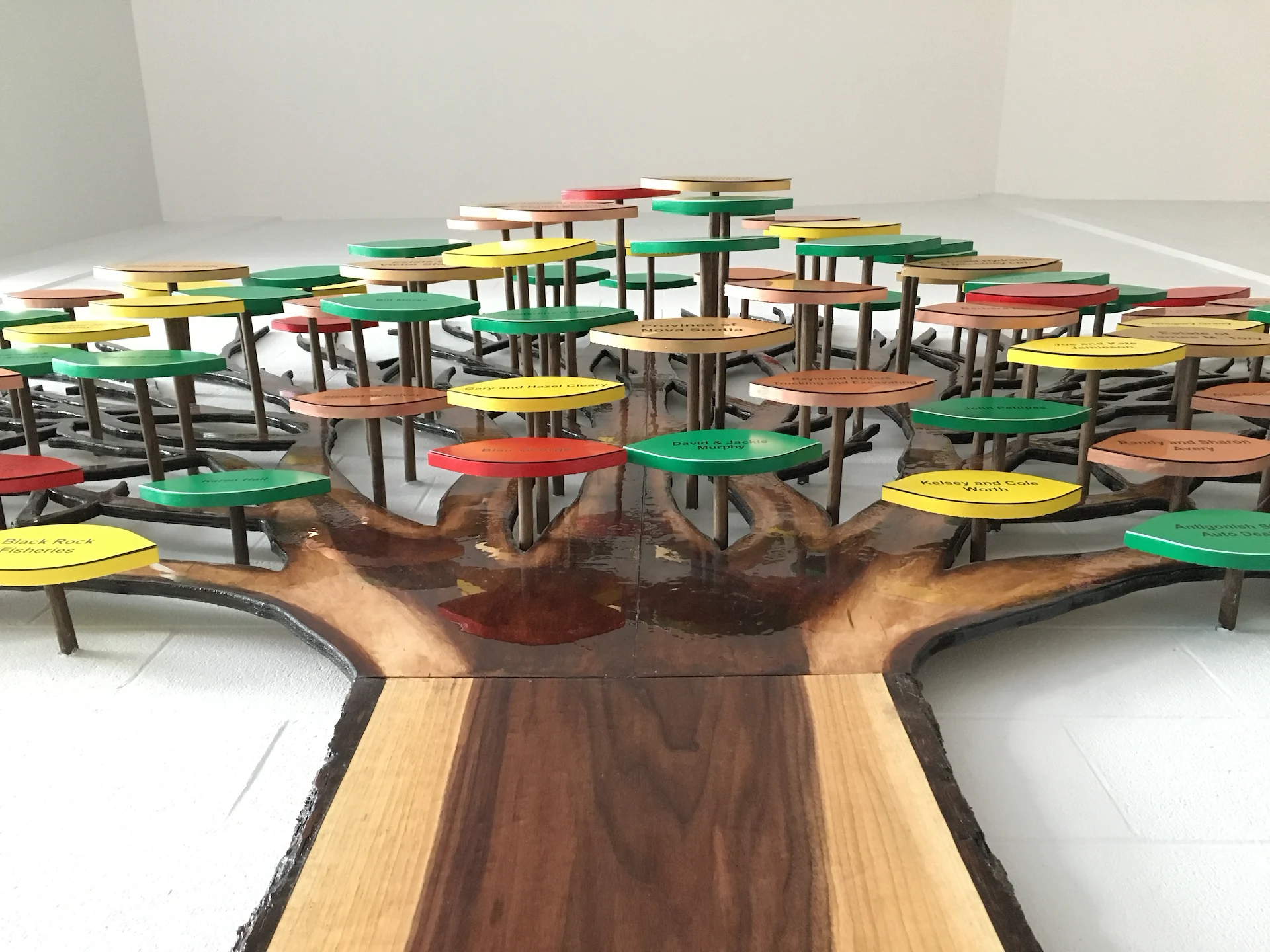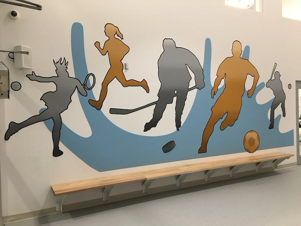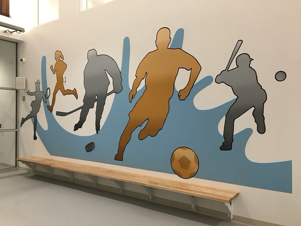 Live edge donor tree sculpture, large scale mural, and various related sub components for the new build state of the art Chedabucto Lifestyle Complex in Guysborough Nova Scotia, Canada.