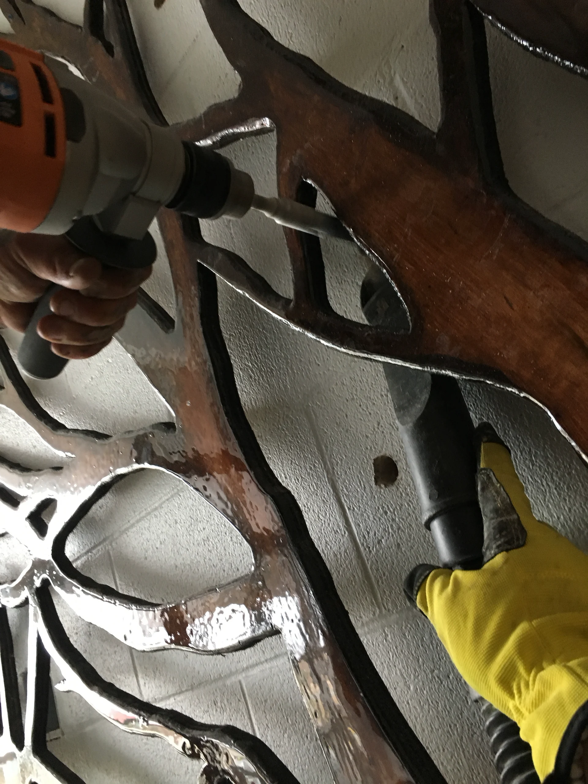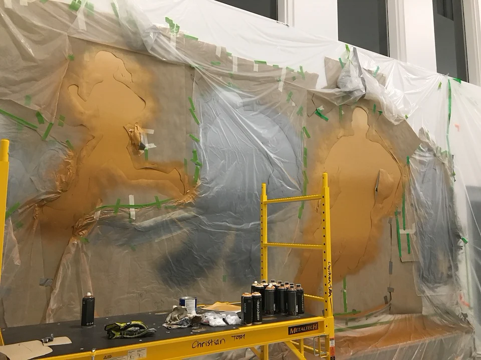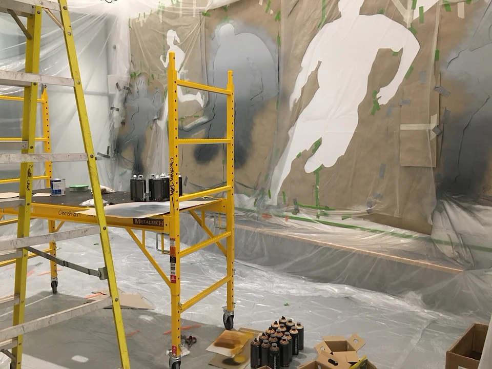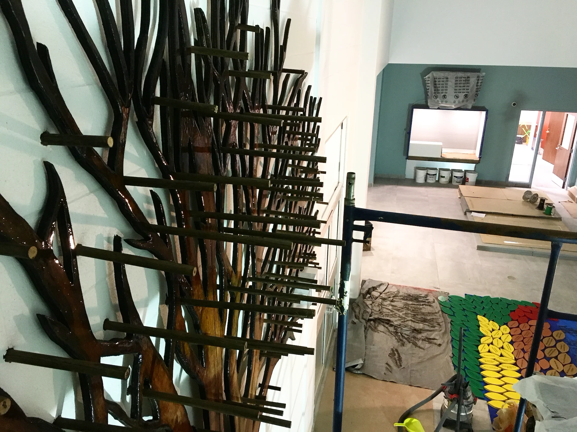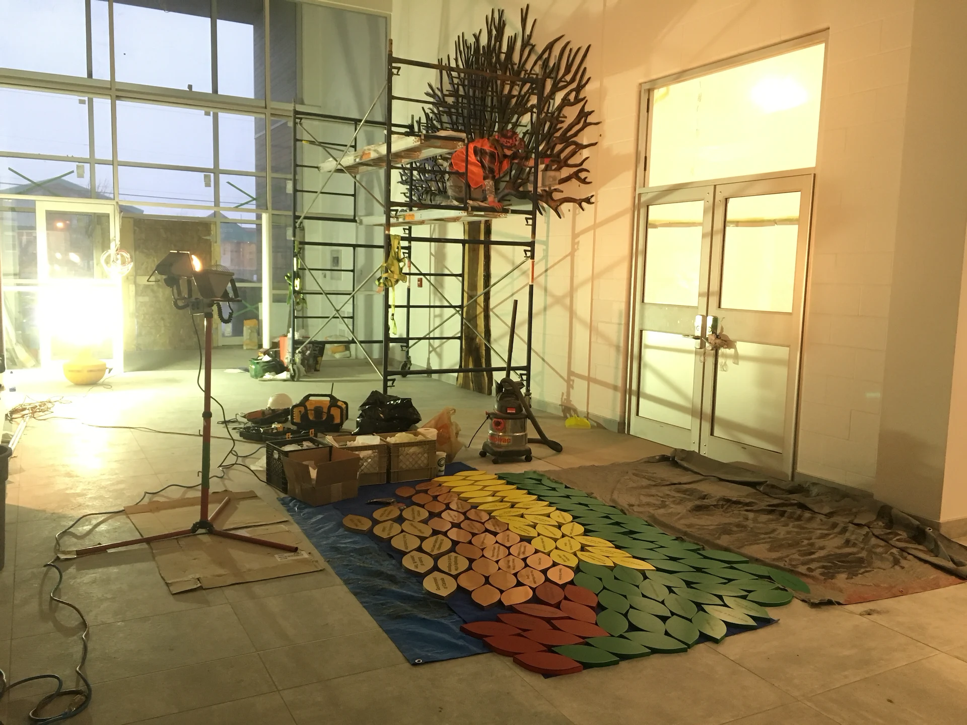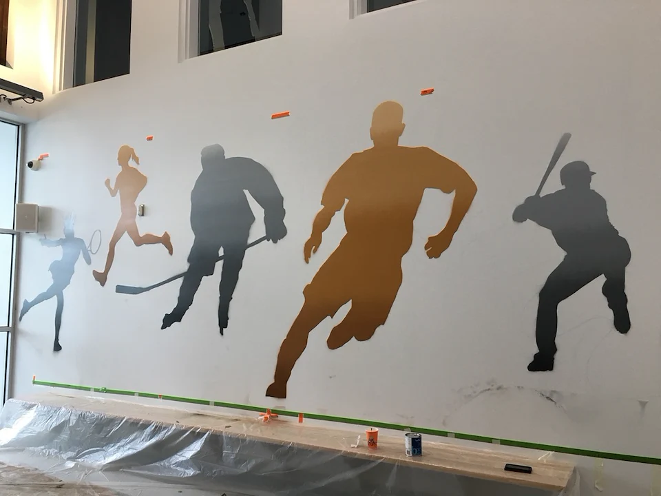 Live edge donor tree sculpture, large scale mural, and various related sub components for the new build state of the art Chedabucto Lifestyle Complex in Guysborough Nova Scotia, Canada.