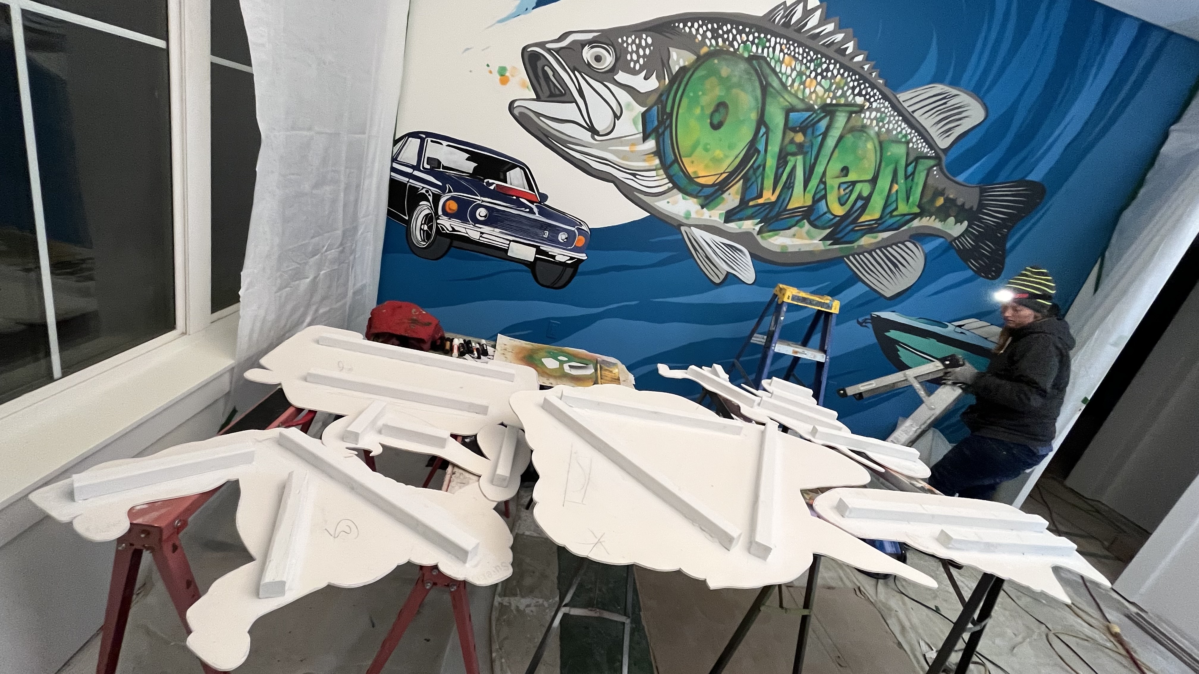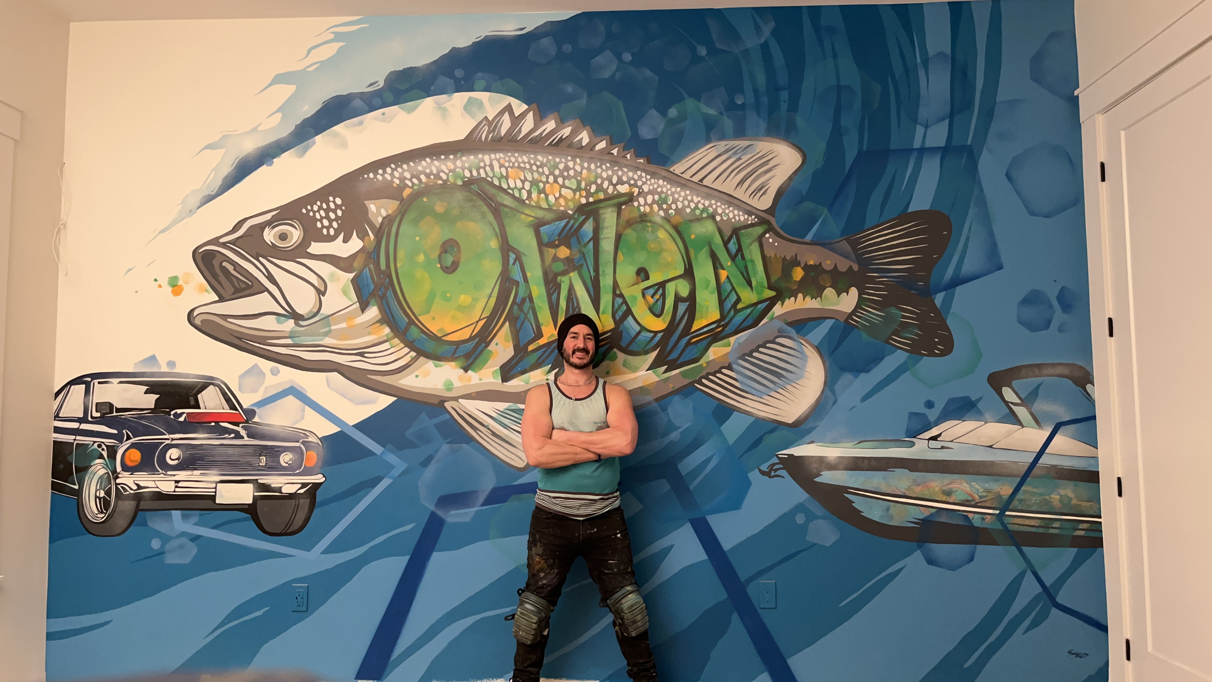 One of the Canadian Maritime provinces oldest high end custom home builders Collins Homes hired Christian Toth to create x6 custom painting signed assets in addition to two installed large floor to ceiling entire wall murals
