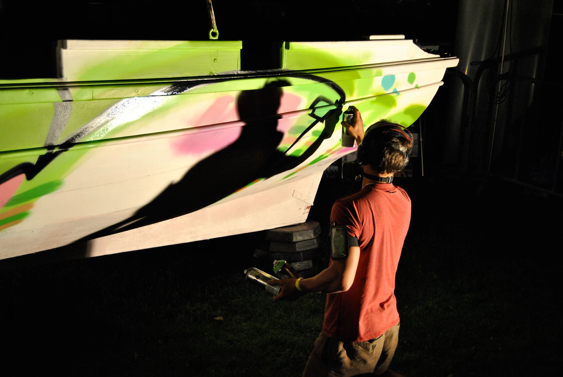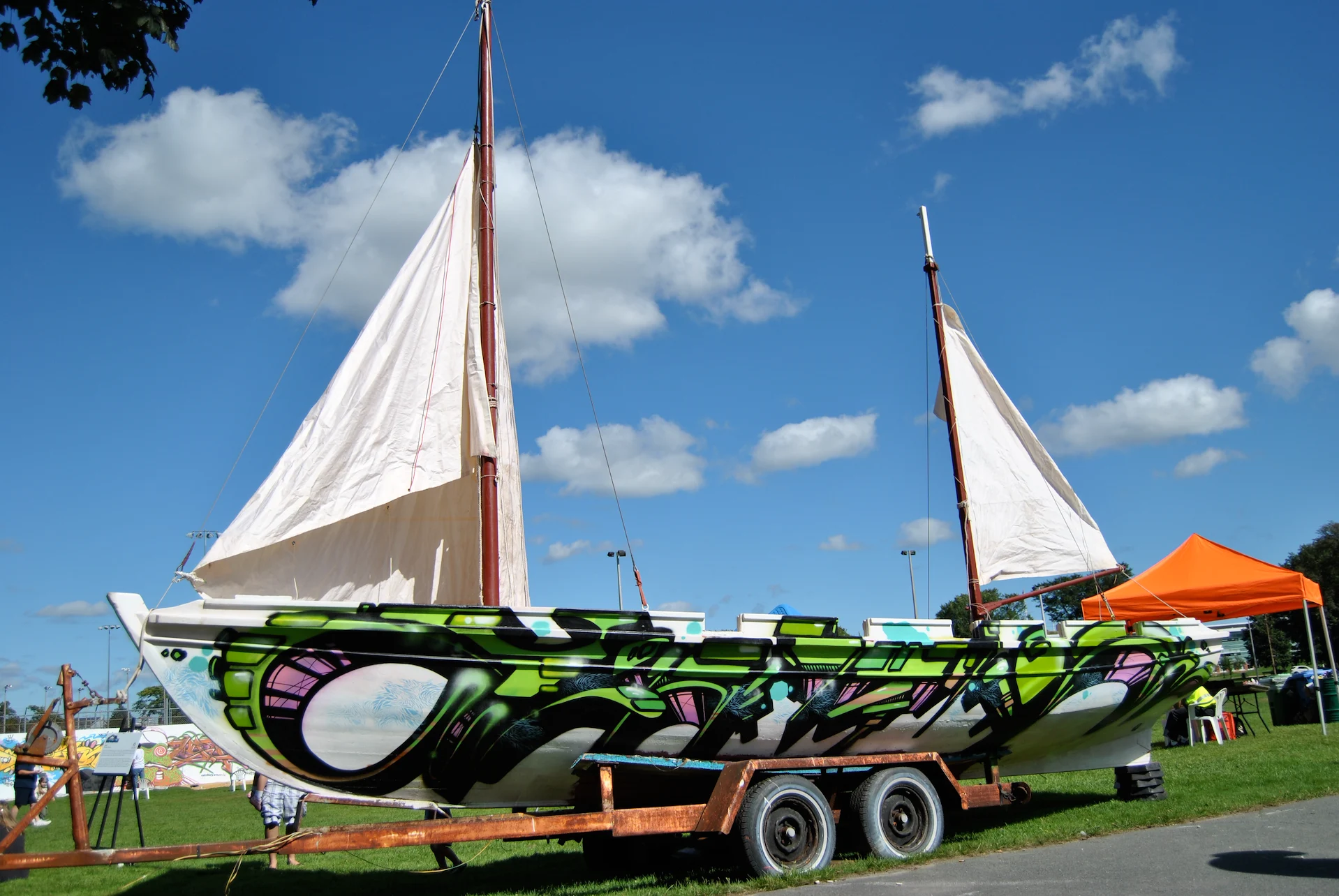 Nova Scotia Sea School had Christian create a work of art for their main vessel the Dorothea one season as part of live art being created during the annual city of Halifax Canada Hopscotch festival.