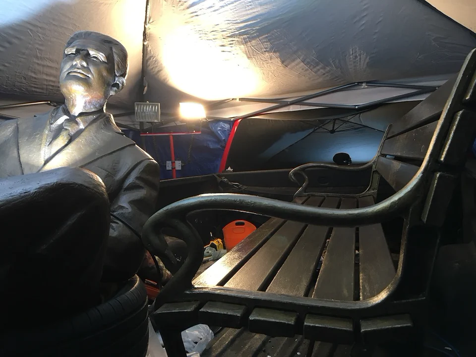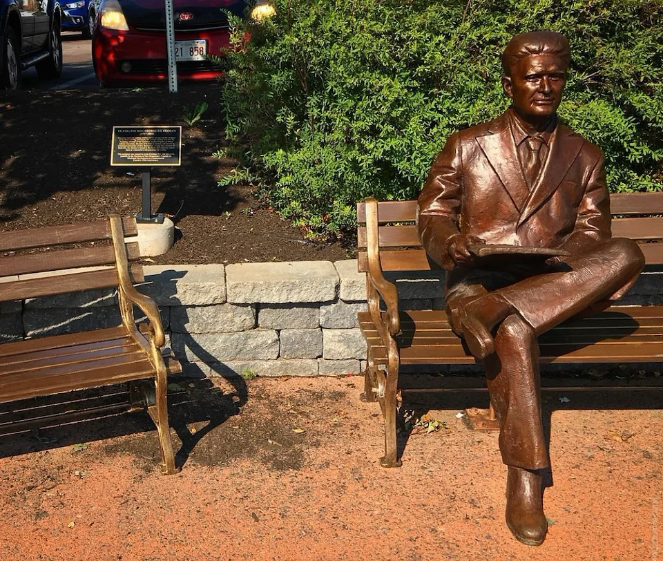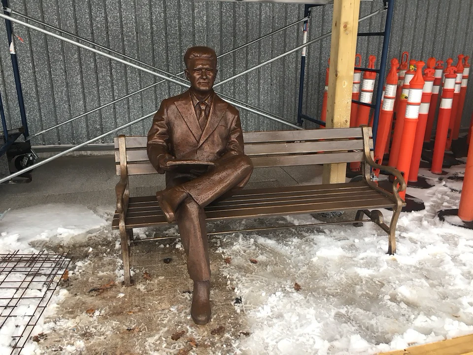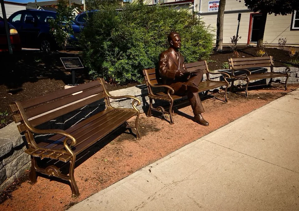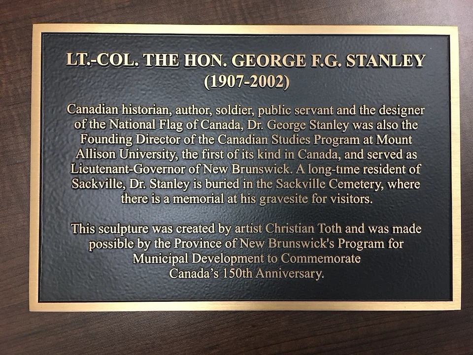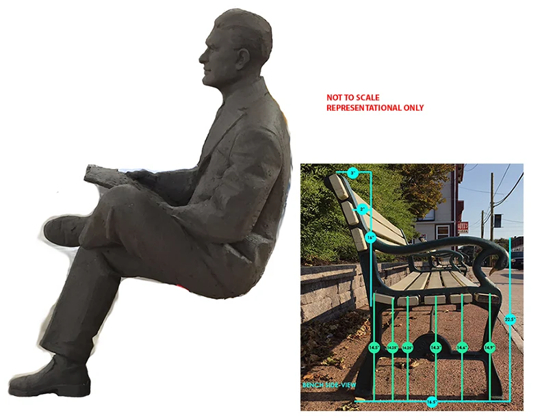 Christian was awarded the RFP to create a life size Bronze Sculpture of the designer of the Canadian flag, the Honourable George Stanley to be permanently installed in the Town of Sackville New Brunswick. As well as a custom designed, and partially refurbished bronze bench. Christian manufactured and welded 8 custom sized steel slats into existing iron cast end bench caps painting the entire piece ‘bronze’, sealing, and matching the sculpture. Please read the bronze plaque in the selected image documentation for additional details of this significant project.