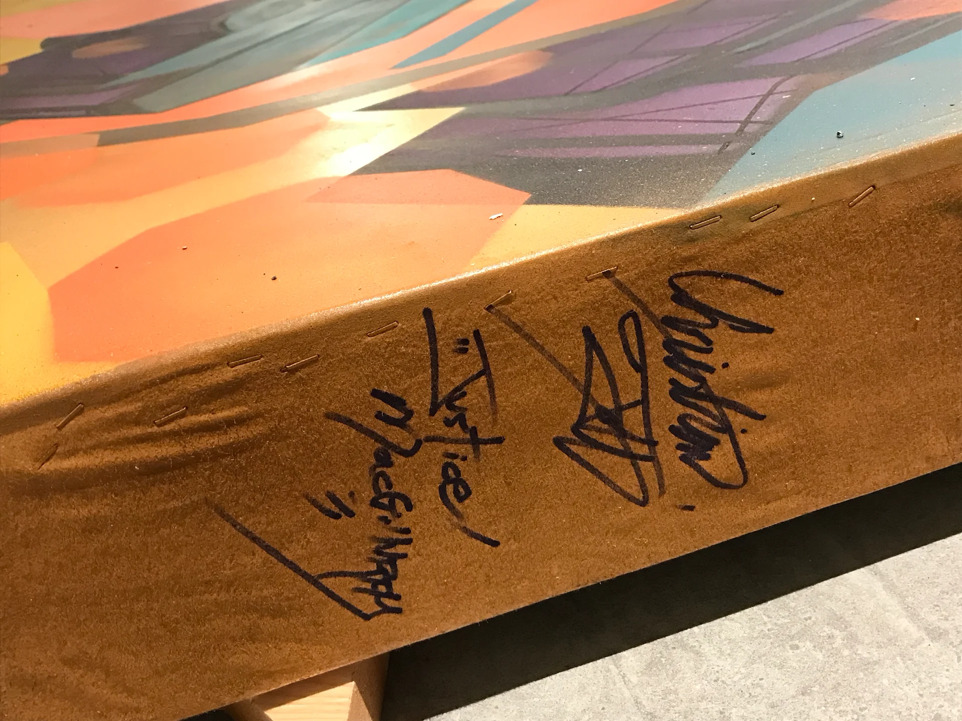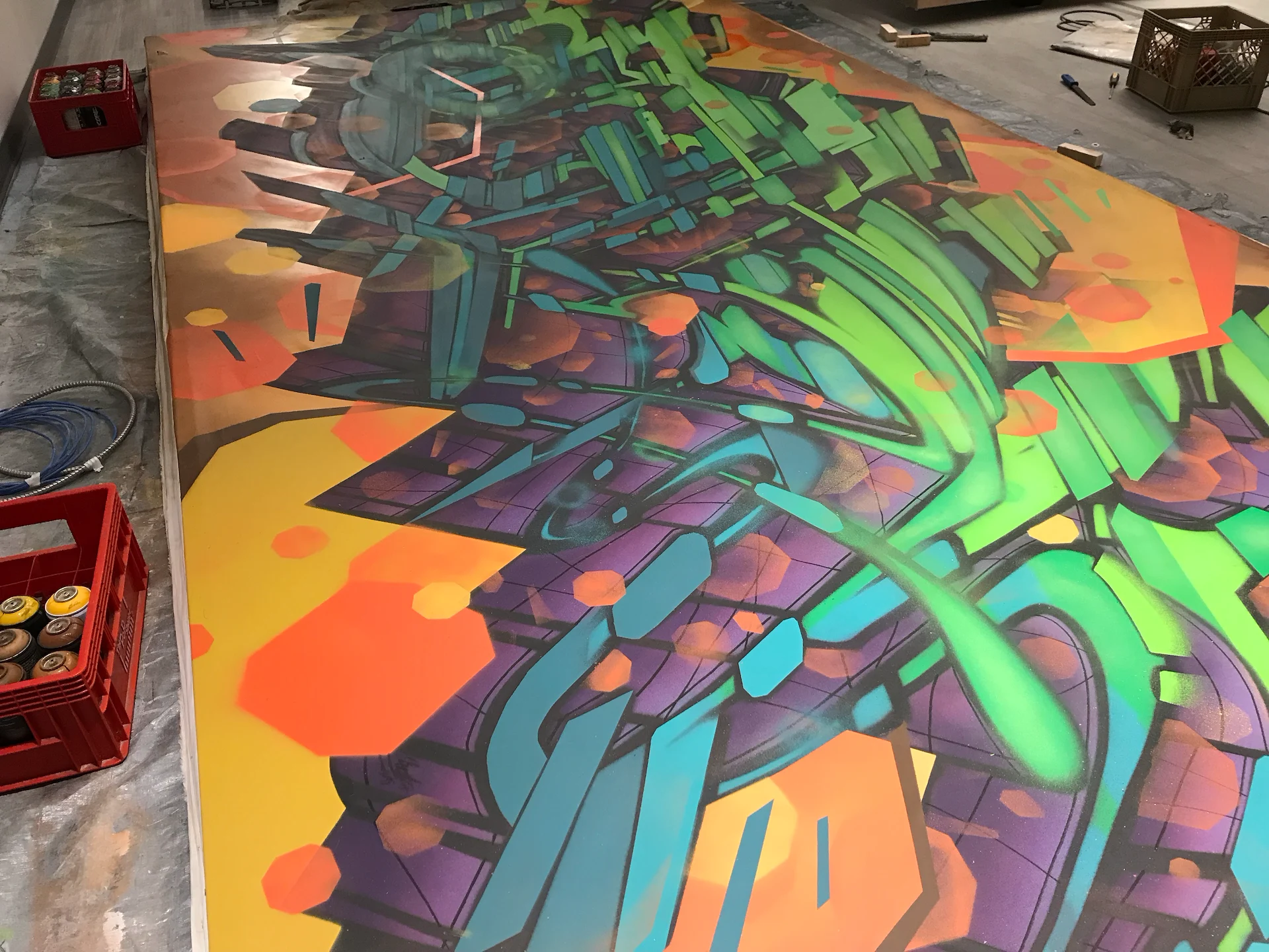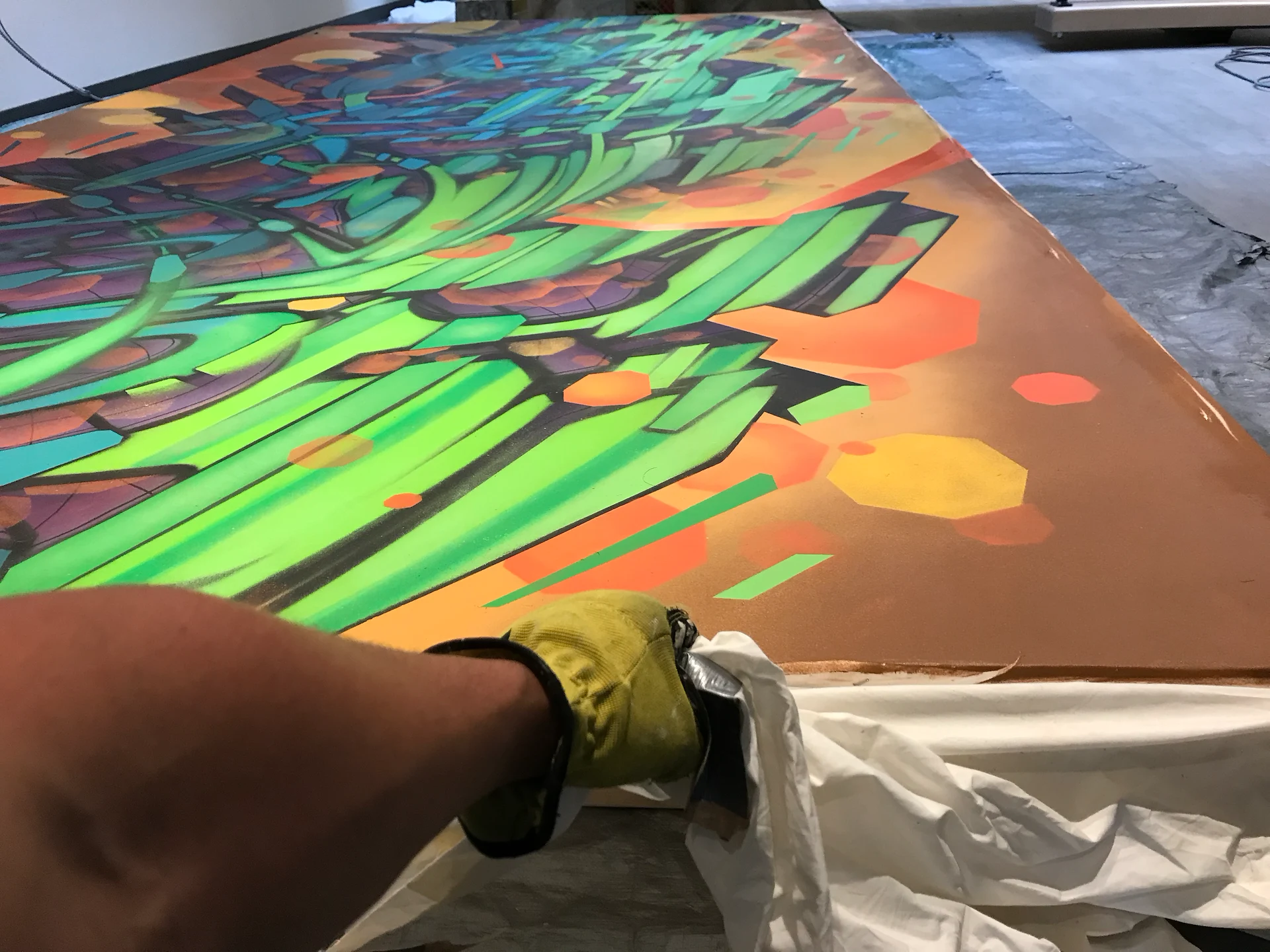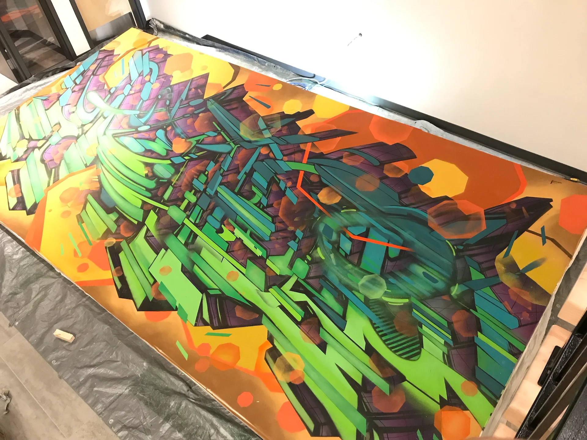 Christian Toth original painting on canvas 16ftx8ft titled ‘Justice’, and mounted on custom built frame. Head offices MacGillivray Injury & Insurance Law Moncton, New Brunswick.