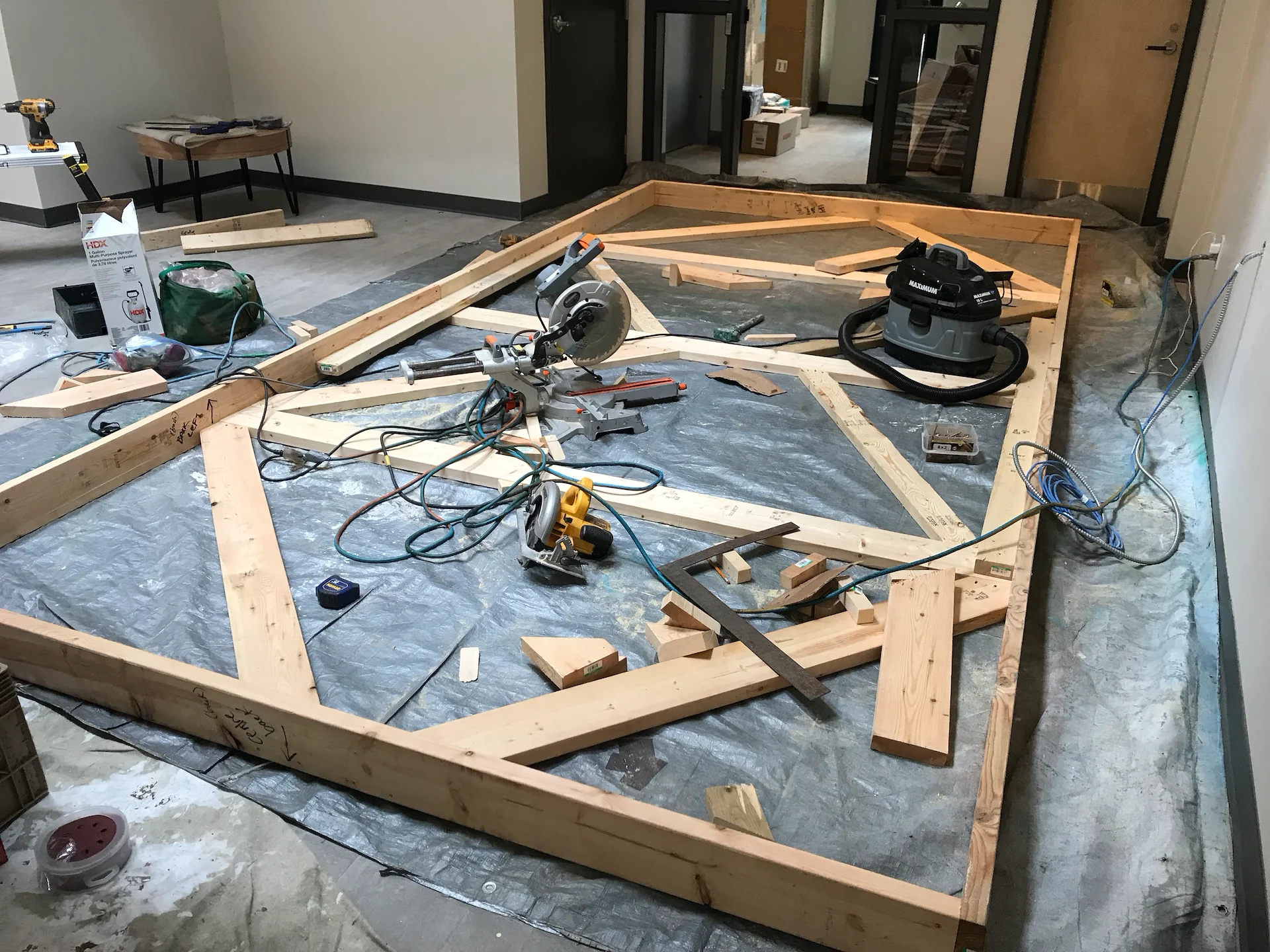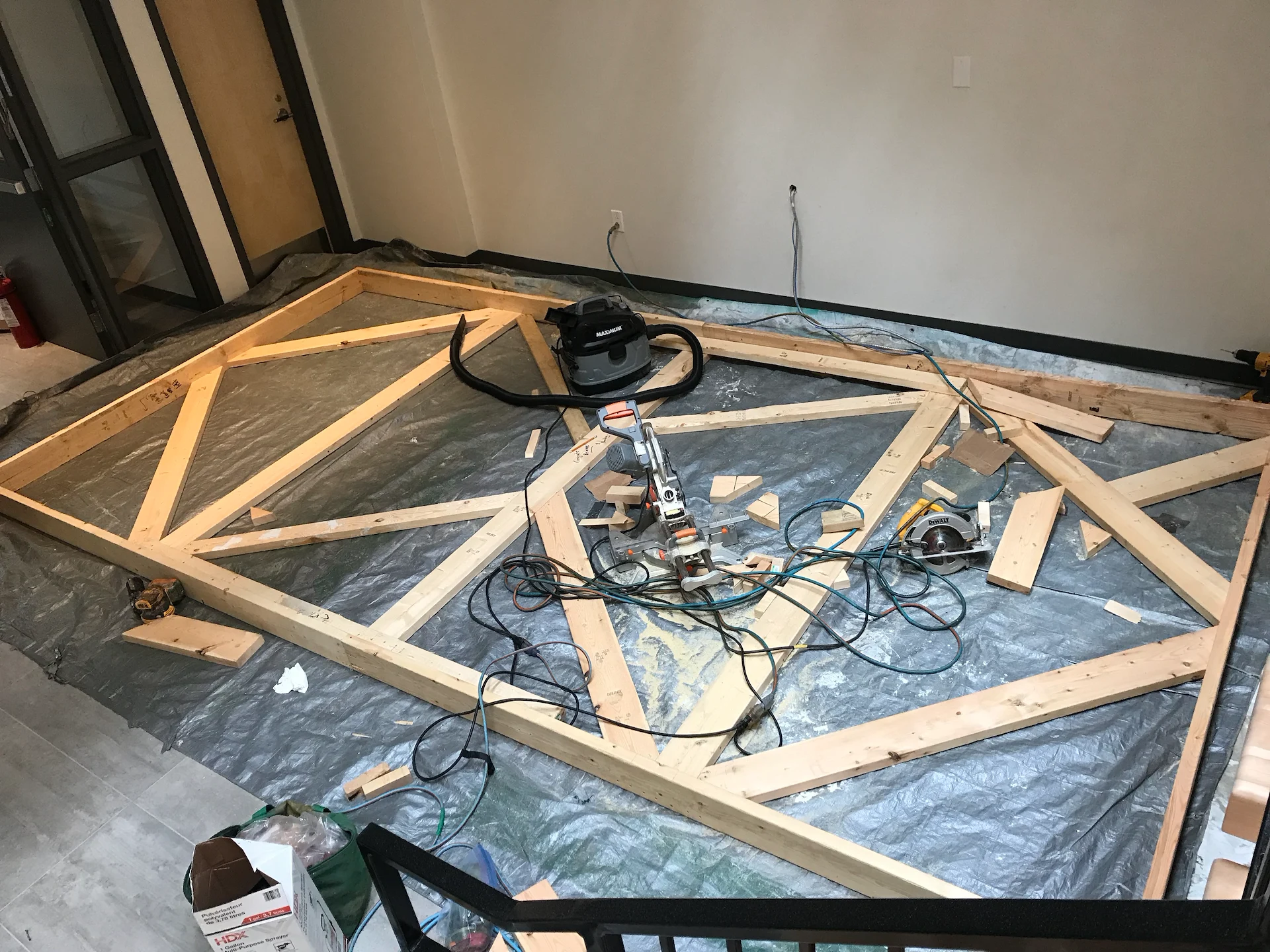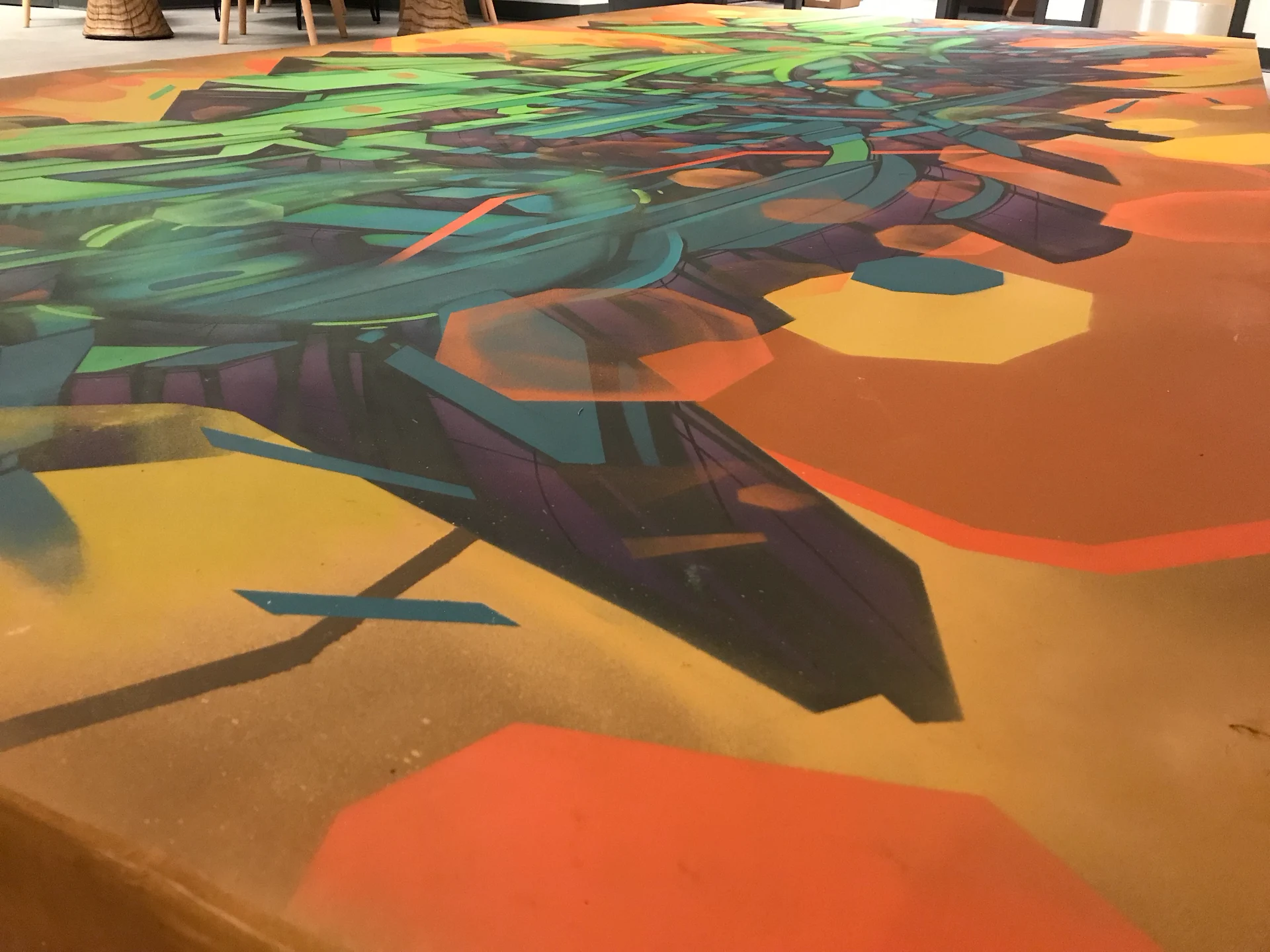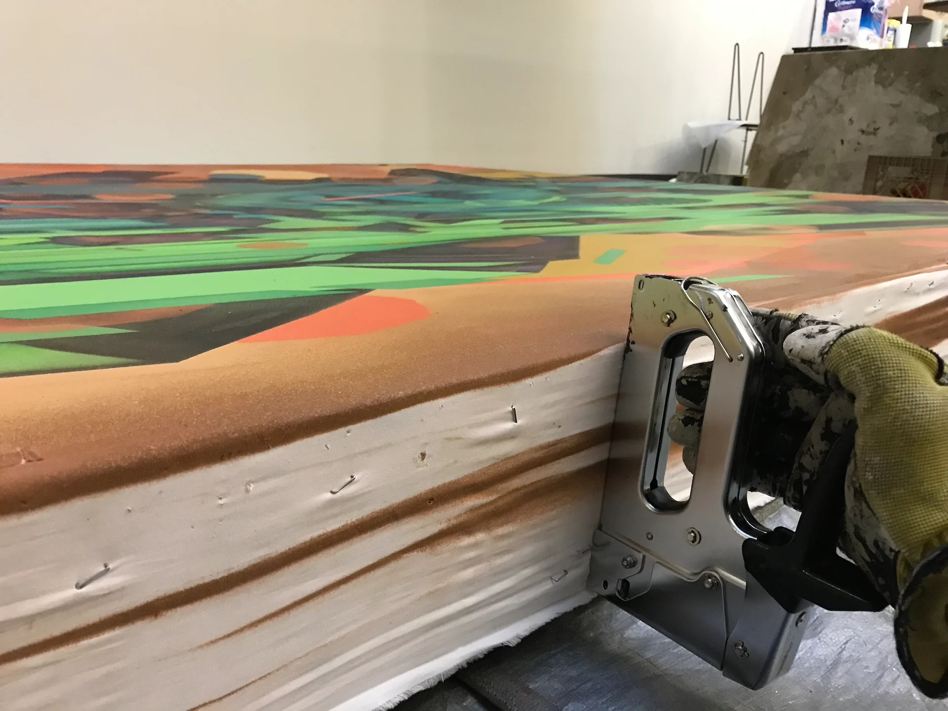 Christian Toth original painting on canvas 16ftx8ft titled ‘Justice’, and mounted on custom built frame. Head offices MacGillivray Injury & Insurance Law Moncton, New Brunswick.