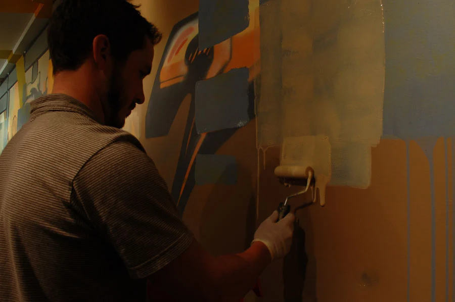 Solo show 'Metamorphosis' – Snowball Gallery – Queen West, Toronto. Entire gallery painted including the ceiling with selected canvas’s.