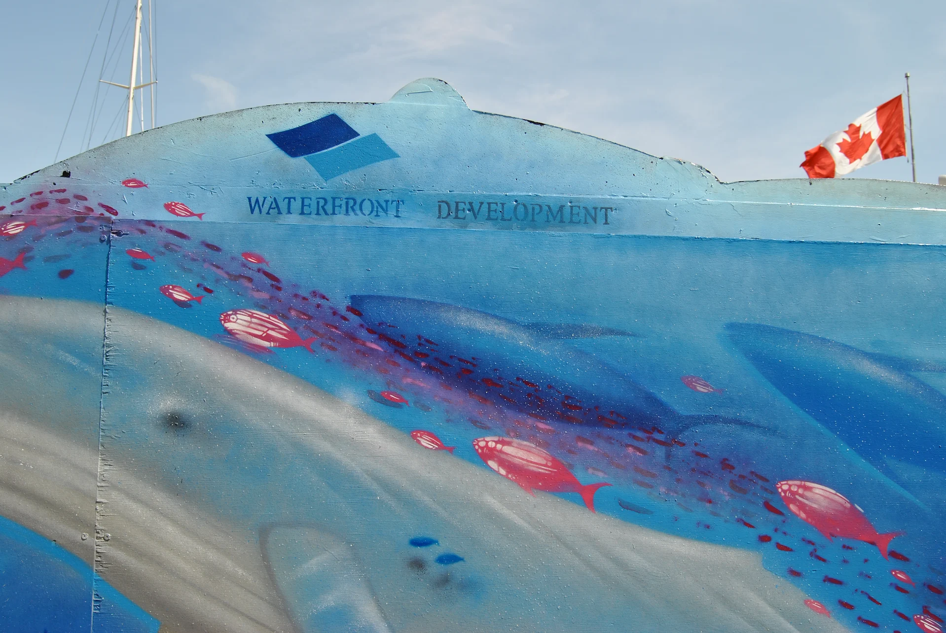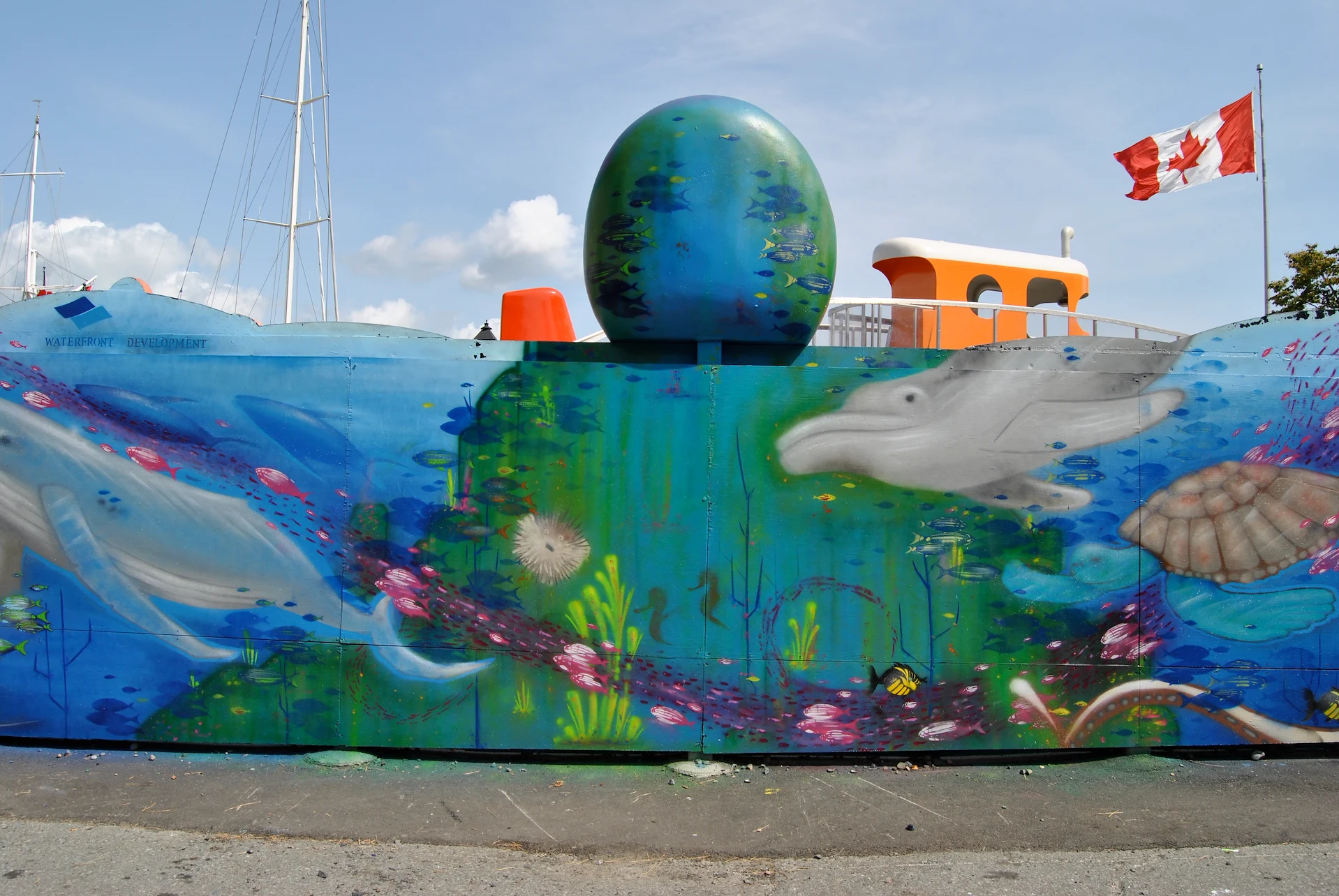 Build Nova Scotia wanted a mural on one of their pieces of real estate on the Halifax Harbour. This beautiful sea theme won the vote.