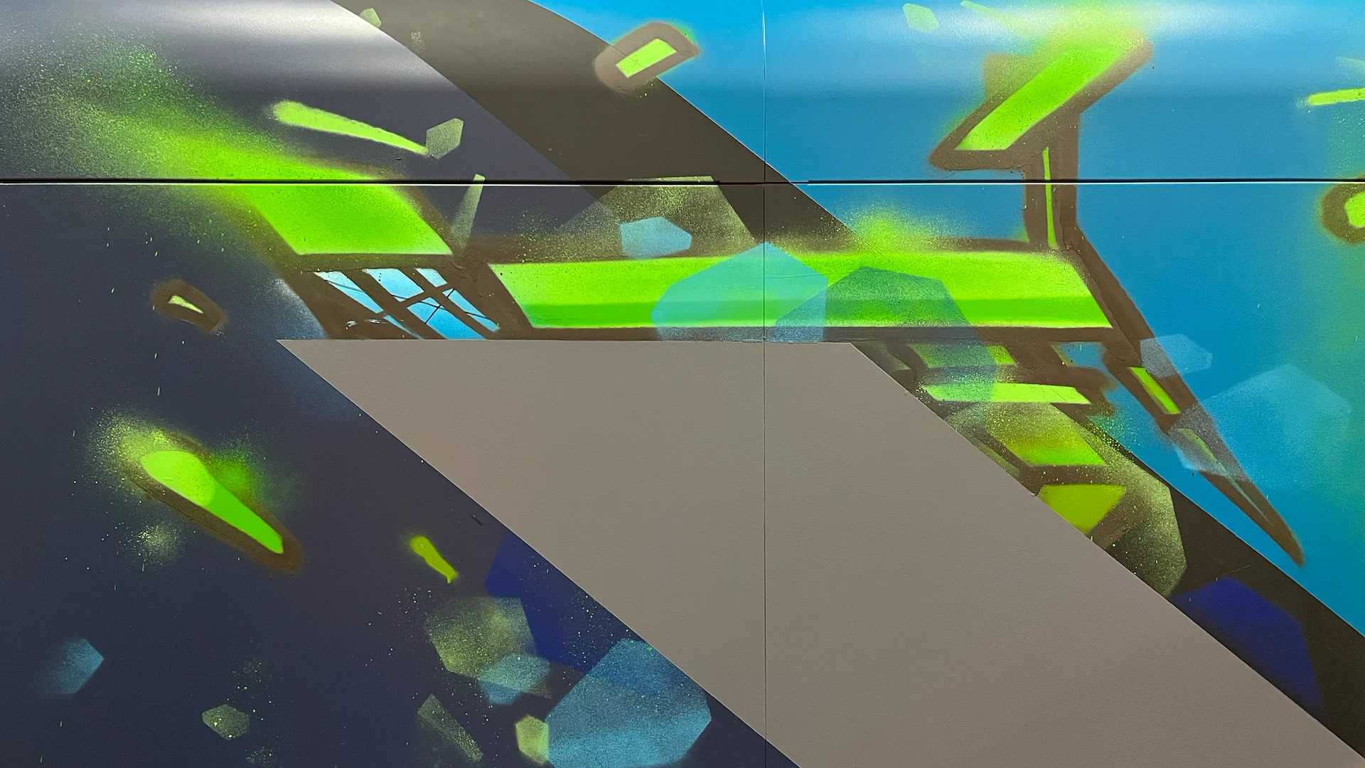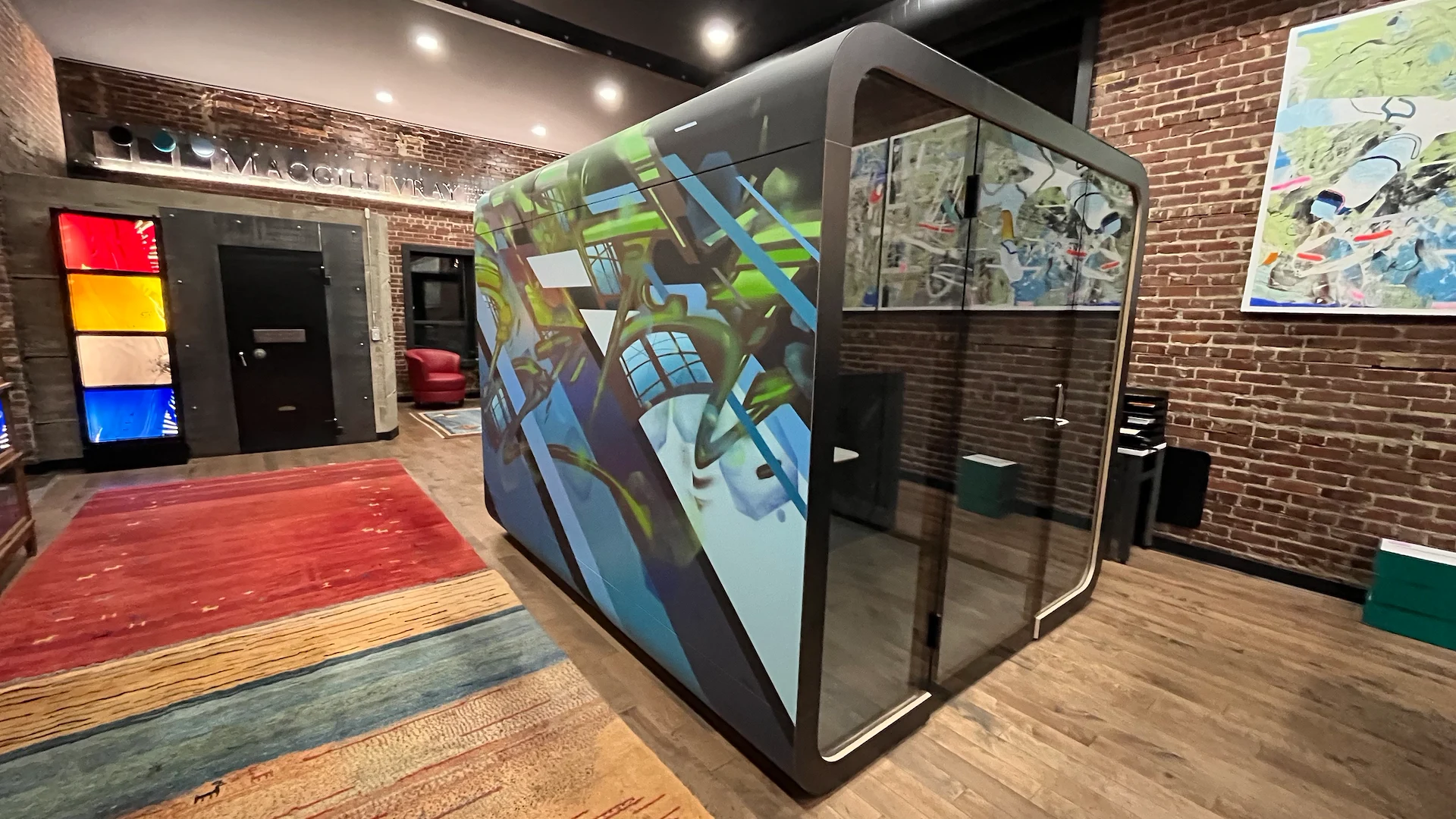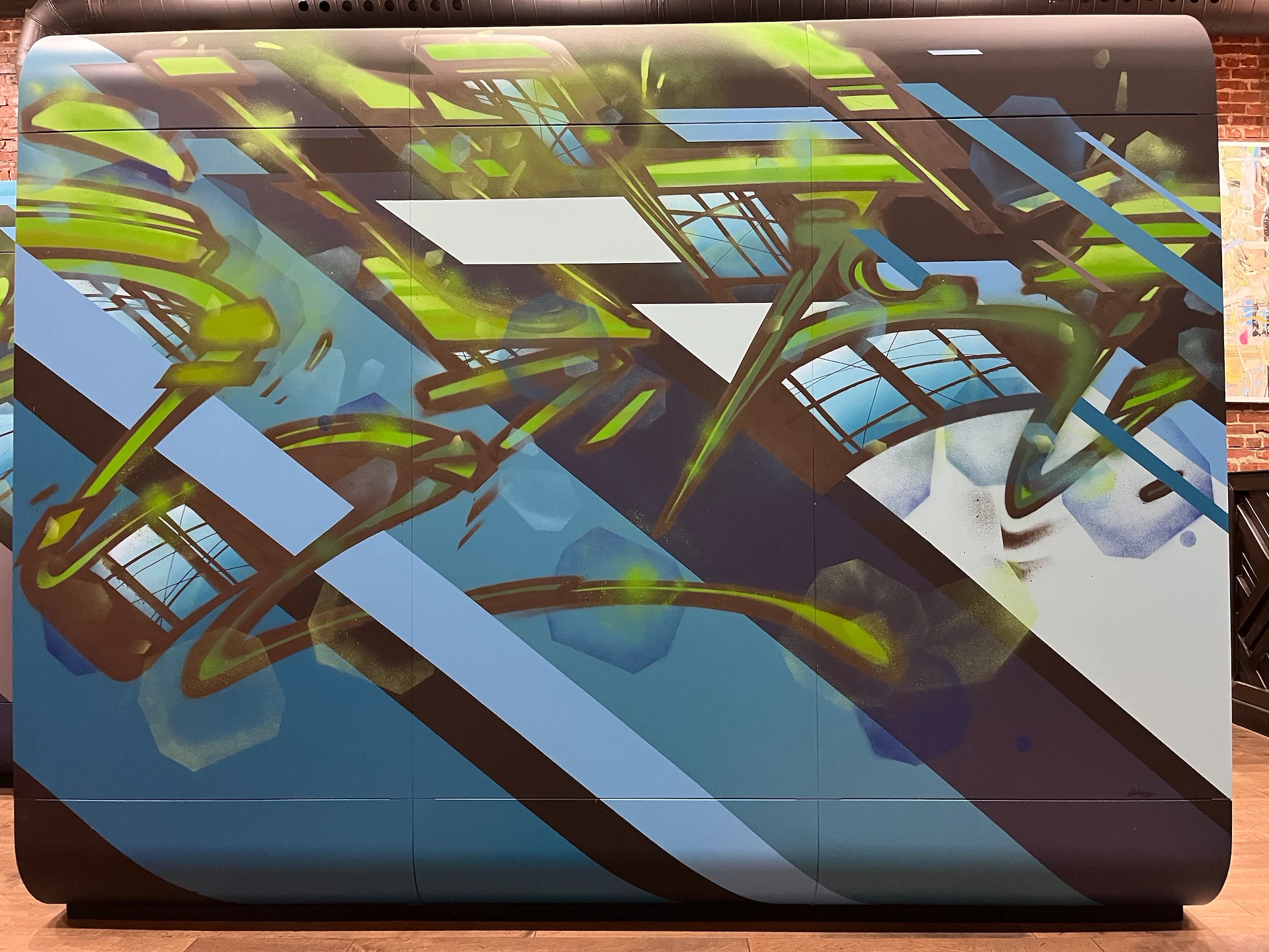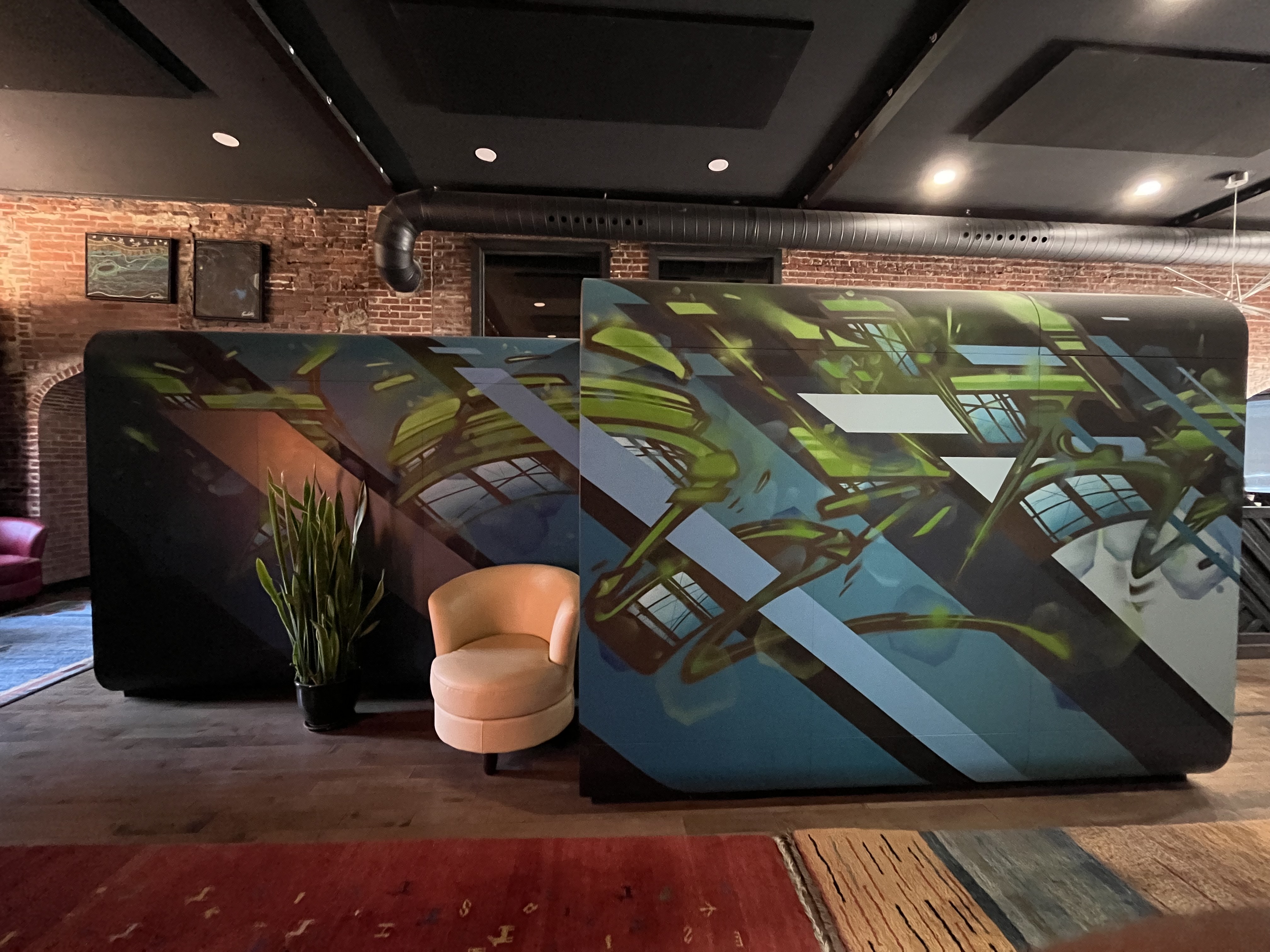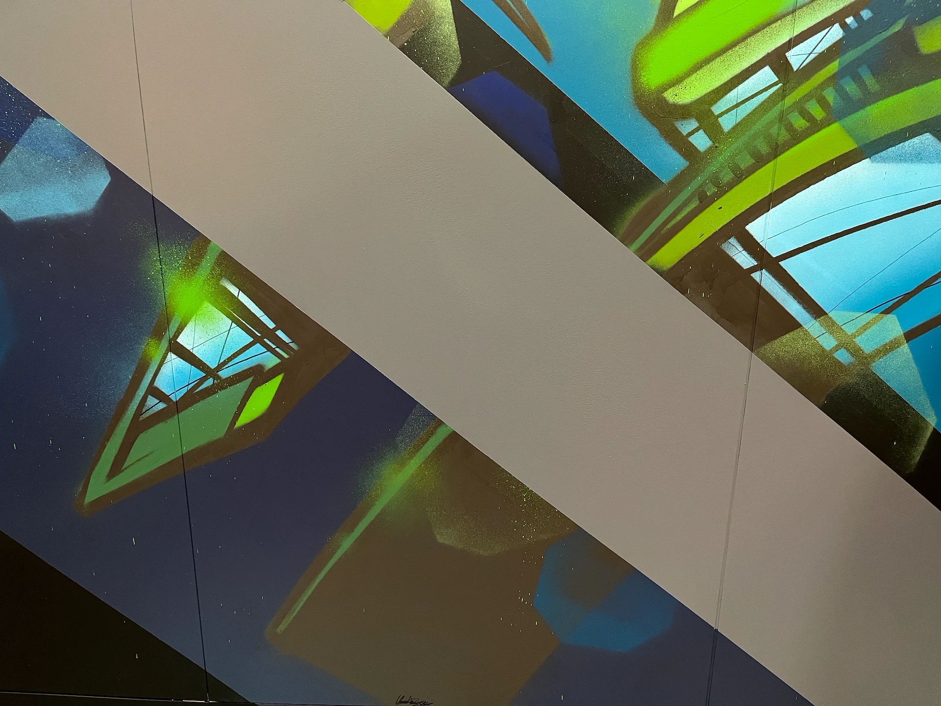 Jamie MacGillivray hired Christian to bring soul and life to the head offices of one of the largest law Law firms in Canada MacGillivray Injury & Insurance Law. Architectural sound proof offices were installed, & an original work of art was created on removable metal sheets as a stand alone signed asset.