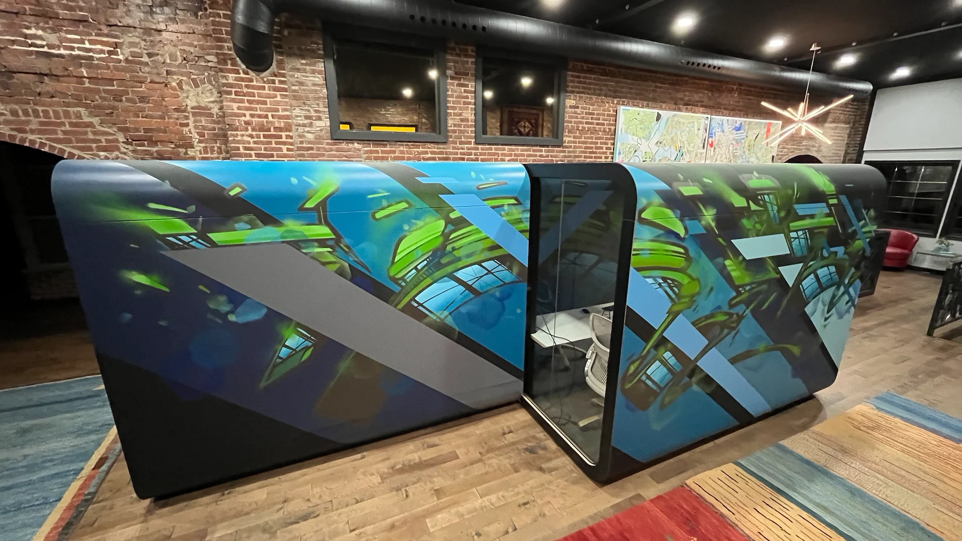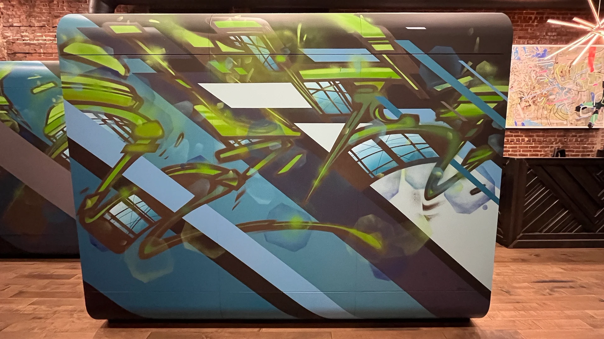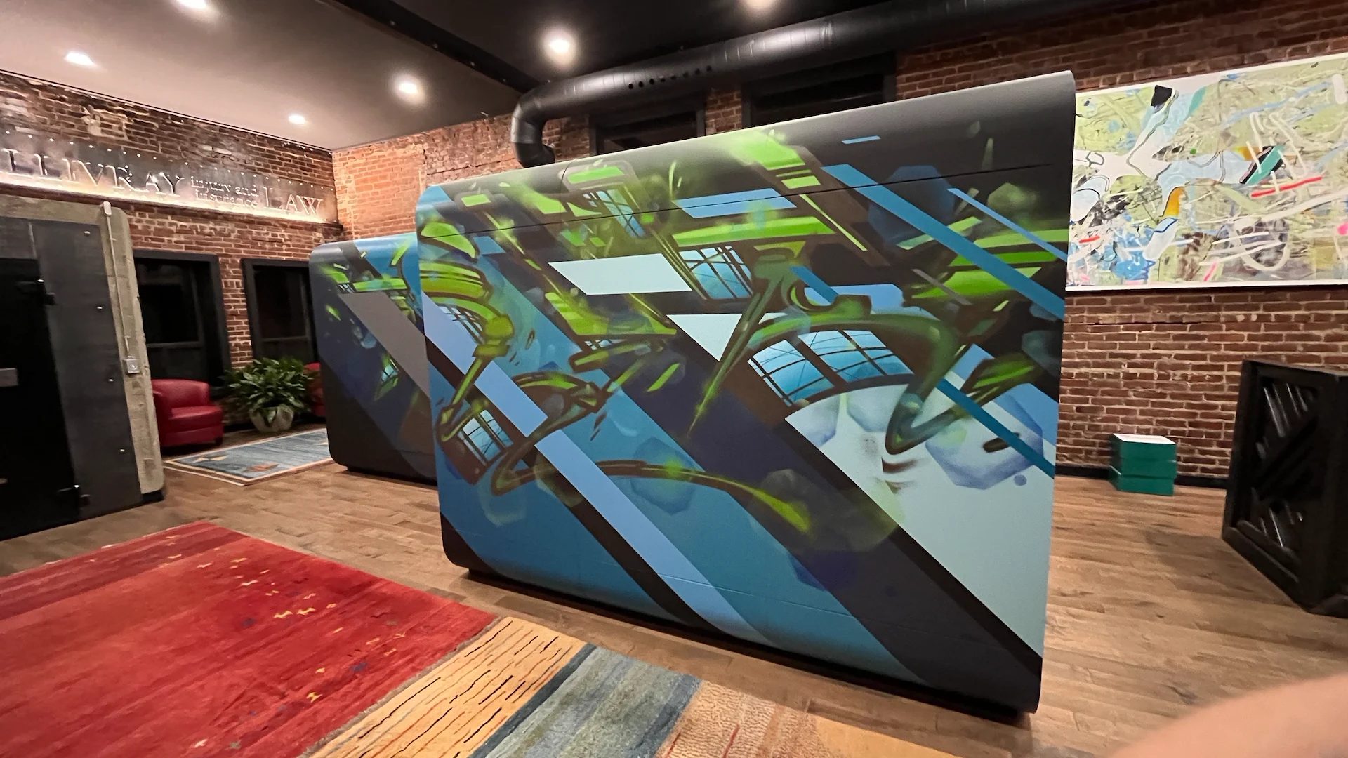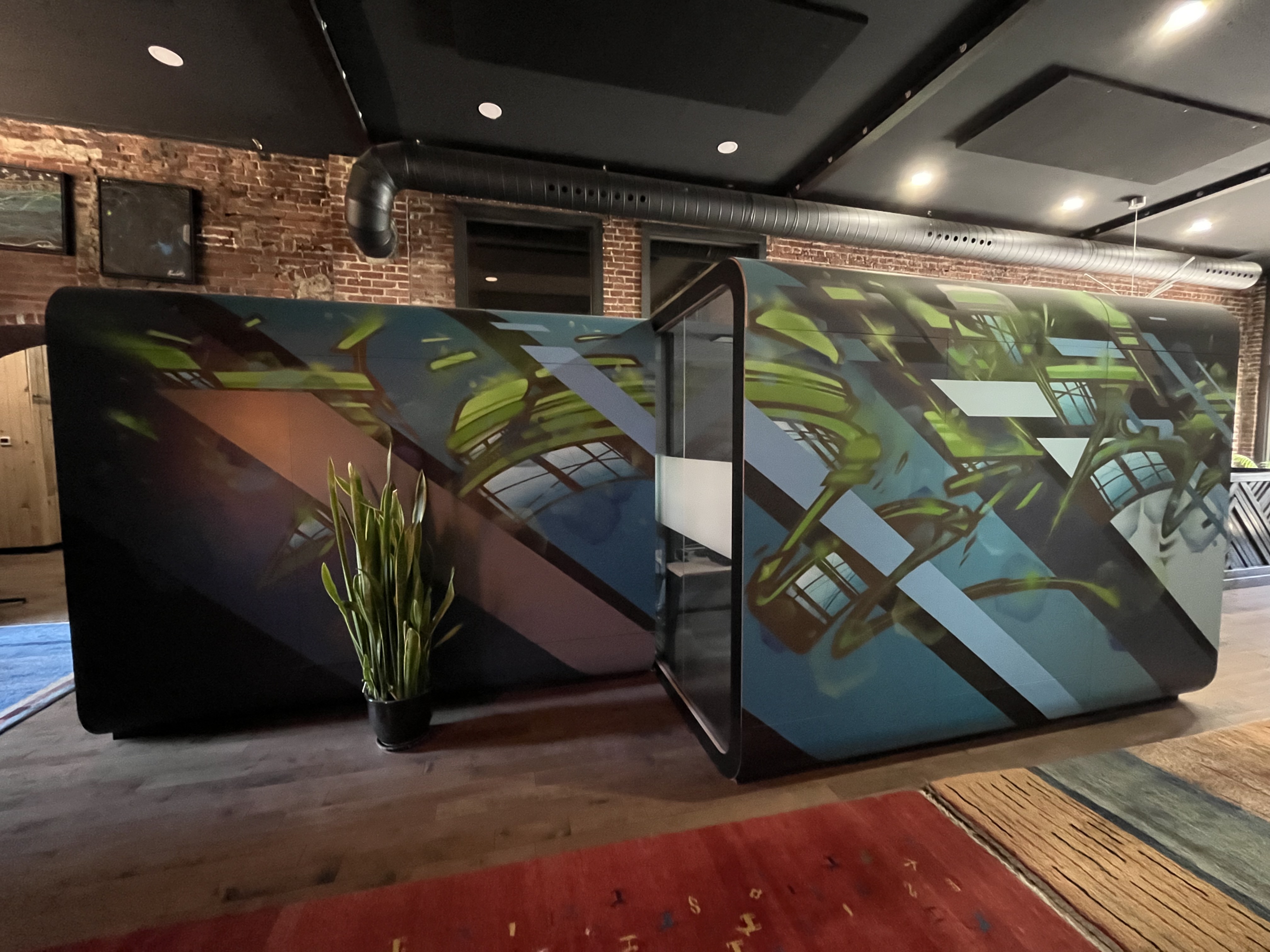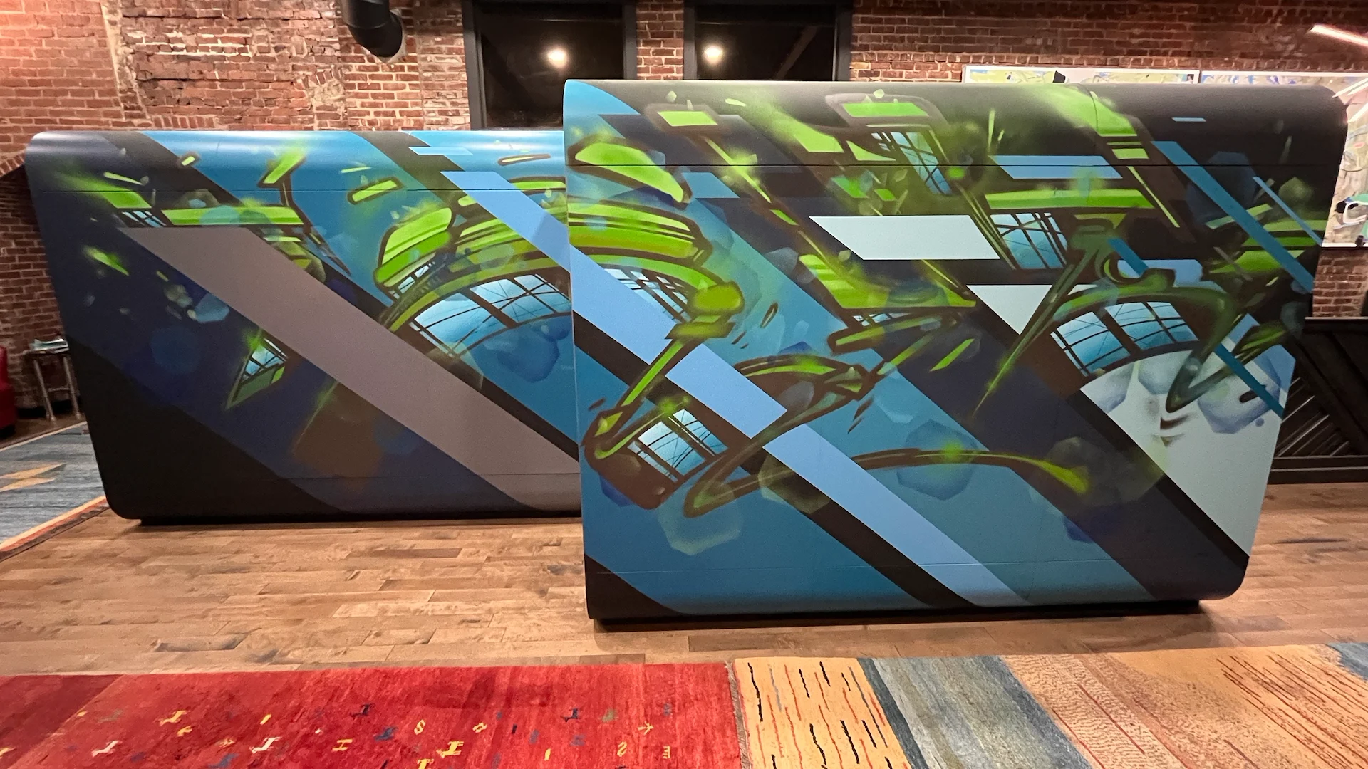 Jamie MacGillivray hired Christian to bring soul and life to the head offices of one of the largest law Law firms in Canada MacGillivray Injury & Insurance Law. Architectural sound proof offices were installed, & an original work of art was created on removable metal sheets as a stand alone signed asset.